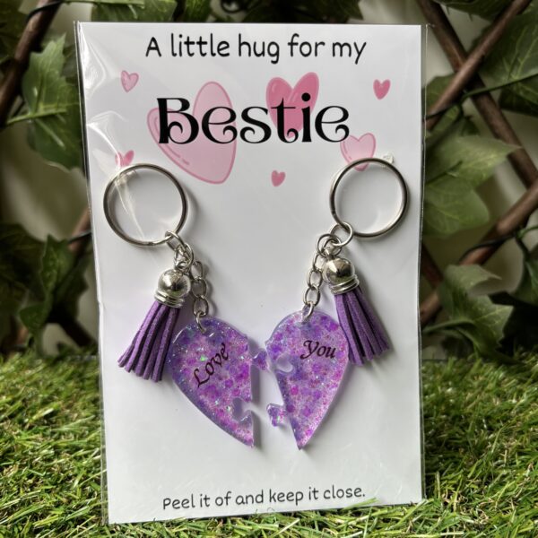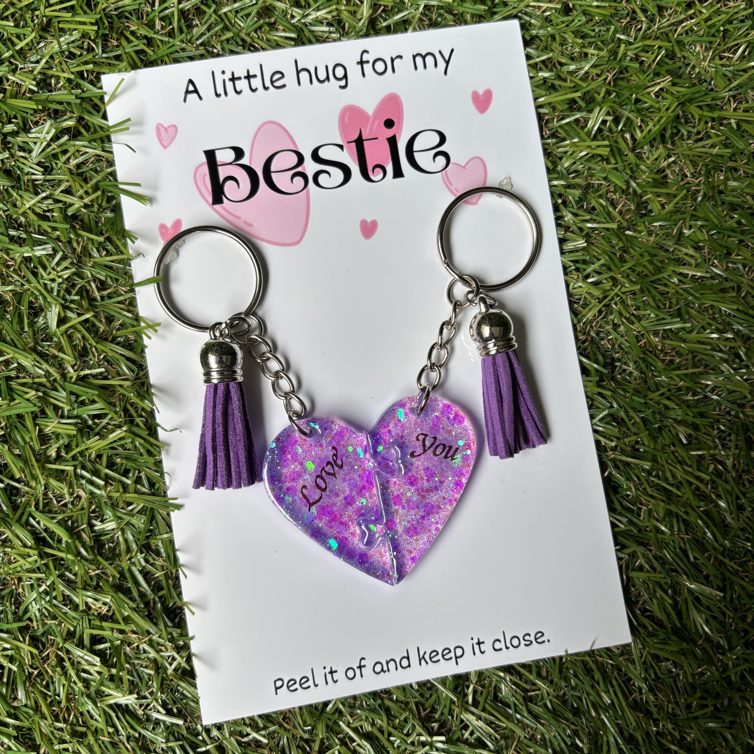 Handgemaakte epoxy sleutelhanger in hartvorm met een mooie tekst, geleverd op een stijlvol kaartje. Het perfecte cadeau voor elke gelegenheid!