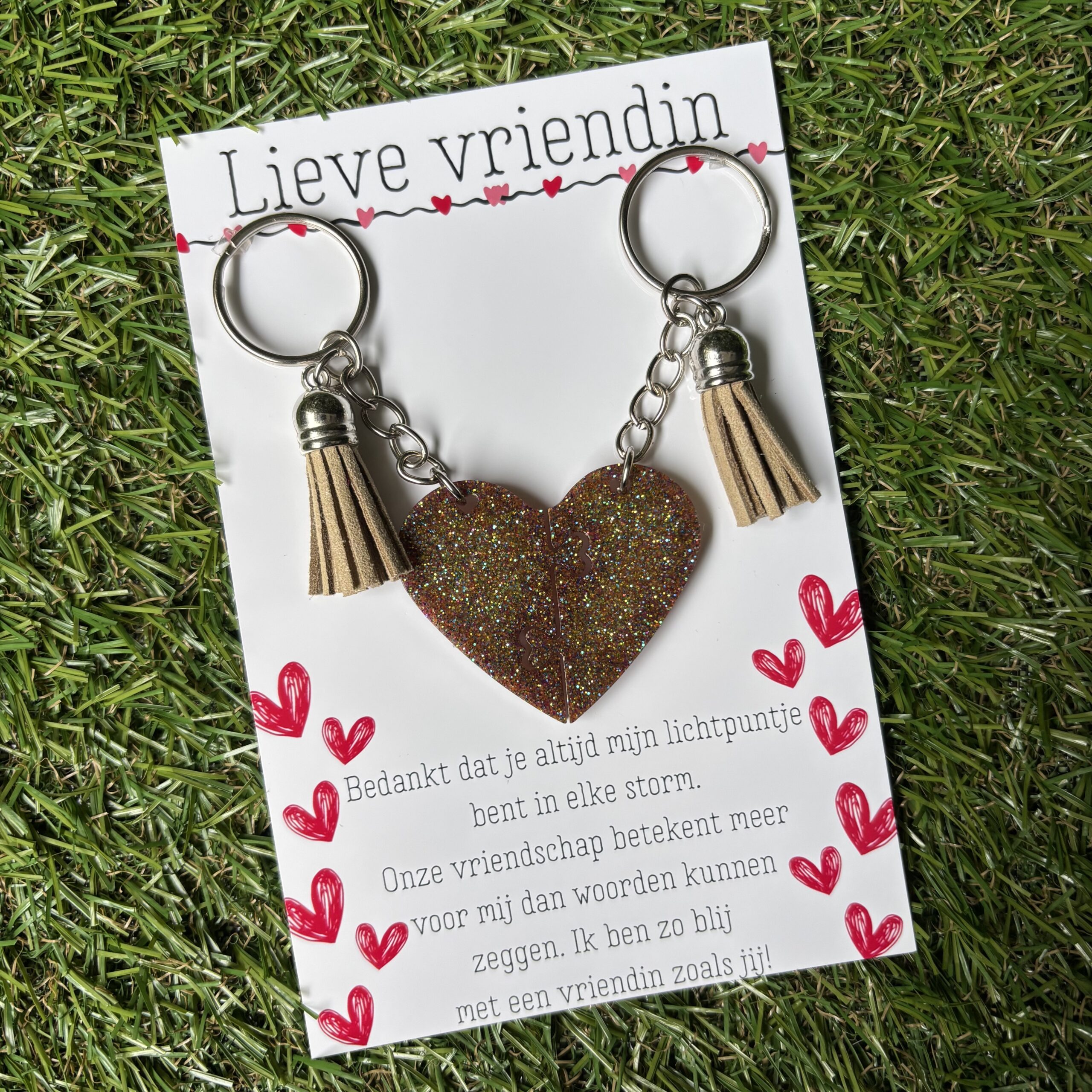 Handgemaakte epoxy sleutelhanger in hartvorm met een mooie tekst, geleverd op een stijlvol kaartje. Het perfecte cadeau voor elke gelegenheid!